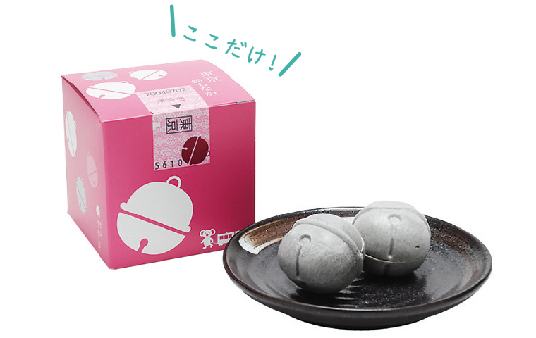 東京駅の定番待ち合わせ場所「銀の鈴」をモチーフにした、グランスタ東京限定商品。なめらかなこし餡と求肥餅のバランスが絶妙で、コロンとした姿が愛らしい。ボックス入りなので、カバンの中で、もなかが潰れる心配なし!