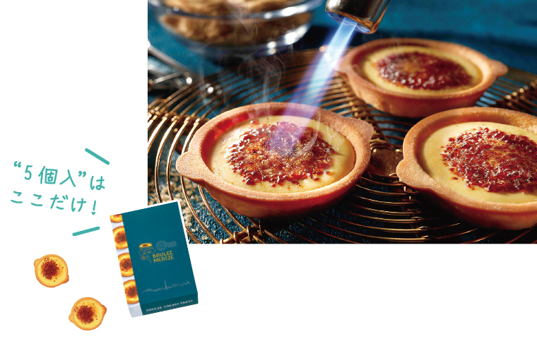 東京ギフトパレットの人気商品ランキングで1位獲得の実績をもつ「ブリュレクリームタルト」が、限定パッケージで登場。こんがりカラメルが甘く香ばしいタルトをひと口かめば、“パリッ”そして“とろーり”。パリジェンヌ気分で楽しんで。