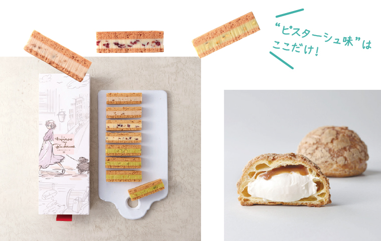 「大人のご褒美おやつ」がコンセプト。独自ブレンドのスパイスが香るビスキュイにガナッシュをはさんだお菓子で、TOKYO店限定の「ピスターシュ」味を含む3種が楽しめる。ワインを飲みながらつまめば、おしゃべりが止まらない!?