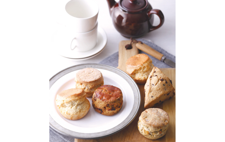 工房一体型店舗で、ガラス越しの工房から小麦粉と甘い砂糖の香りがふわり。丁寧に焼き上げたスコーンは、どれも素朴で味わい深く、思わずほっこり笑顔にさせられる。芋ようかんで有名な「舟和」とのコラボなど、おいしさも話題も2倍!