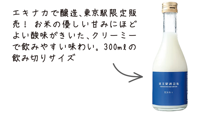 全国各地の日本酒を中心に、焼酎やワイン、そして世界初となるエキナカ酒蔵「東京駅酒造場」で製造した日本酒、どぶろく、リキュールなどを販売。飲み切りサイズも豊富で、手軽な土産にうれしい。また日本酒バーを併設し、スタッフ厳選の日本酒を日替わりで提供。移動前にちょっと1杯、ぜいたくなひとときを過ごそう。