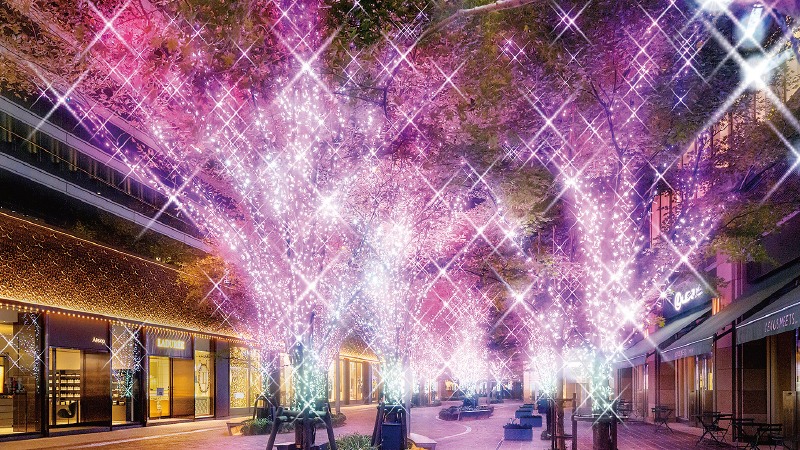 日本橋の中央通り沿いに並ぶ重要文化財や大型複合ビル、江戸桜通り沿いの桜並木周辺一帯に、温かな灯がともる。LEDライト合計20万球超のイルミネーションを展開するほか、期間中エリア内の施設ではライトアップやクリスマスイベントも実施。歴史といまが交錯する、日本橋ならではの夜を楽しみたい。