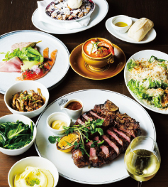 青山の名店「TWO ROOMS」の姉妹店。グリルを中心としたバラエティ豊かなメニューがそろうほか、バーカウンターを備え、フルーツカクテルやワイン、日本酒まで幅広いドリンクメニューも用意。また、通し営業なのでカフェ利用も可能。丁寧に仕上げられたひと皿を、都心とは思えない解放感とともに味わいたい。